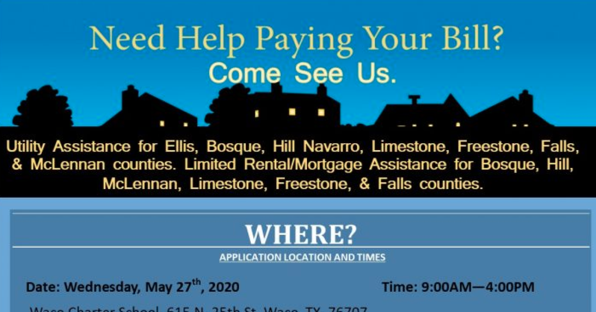 Utility assistance is available for residents of Ellis, Bosque, Hill Navarro, Limestone, Freestone, Falls and McLennan counties and limited mortgage and rental assistance is available for residents of Bosque, Hill, McLennan, Limestone, Freestone and Falls counties.